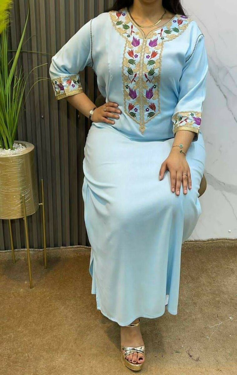 Découvrez cette magnifique robe caftan pour femme, ornée de broderies exquises. Parfaite pour des occasions spéciales, cette tenue élégante offre confort et style.