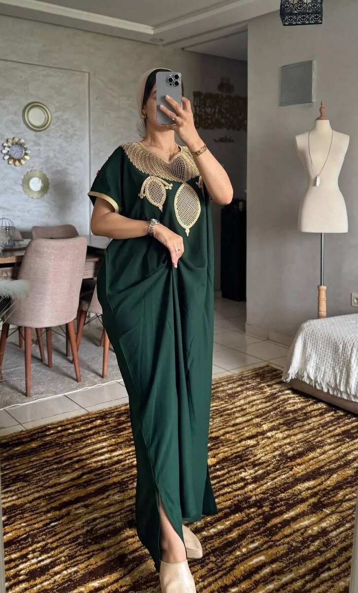 Découvrez cette élégante robe caftan, parfaite pour des occasions spéciales et des soirées. Confectionnée dans un tissu doux et fluide, elle offre un confort optimal tout en accentuant votre silhouette. Les détails dorés ajoutent une touche de sophistication et de raffinement à votre style. Idéale pour les événements et les cérémonies.