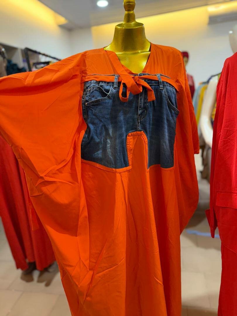 Optez pour ce caftan orange vibrant avec un accent en denim, parfait pour une tenue décontractée et stylée. Idéal pour toutes occasions, sa coupe ample garantit confort et élégance. Fabriqué avec des matériaux de qualité supérieure, c'est un choix incontournable pour votre garde-robe.