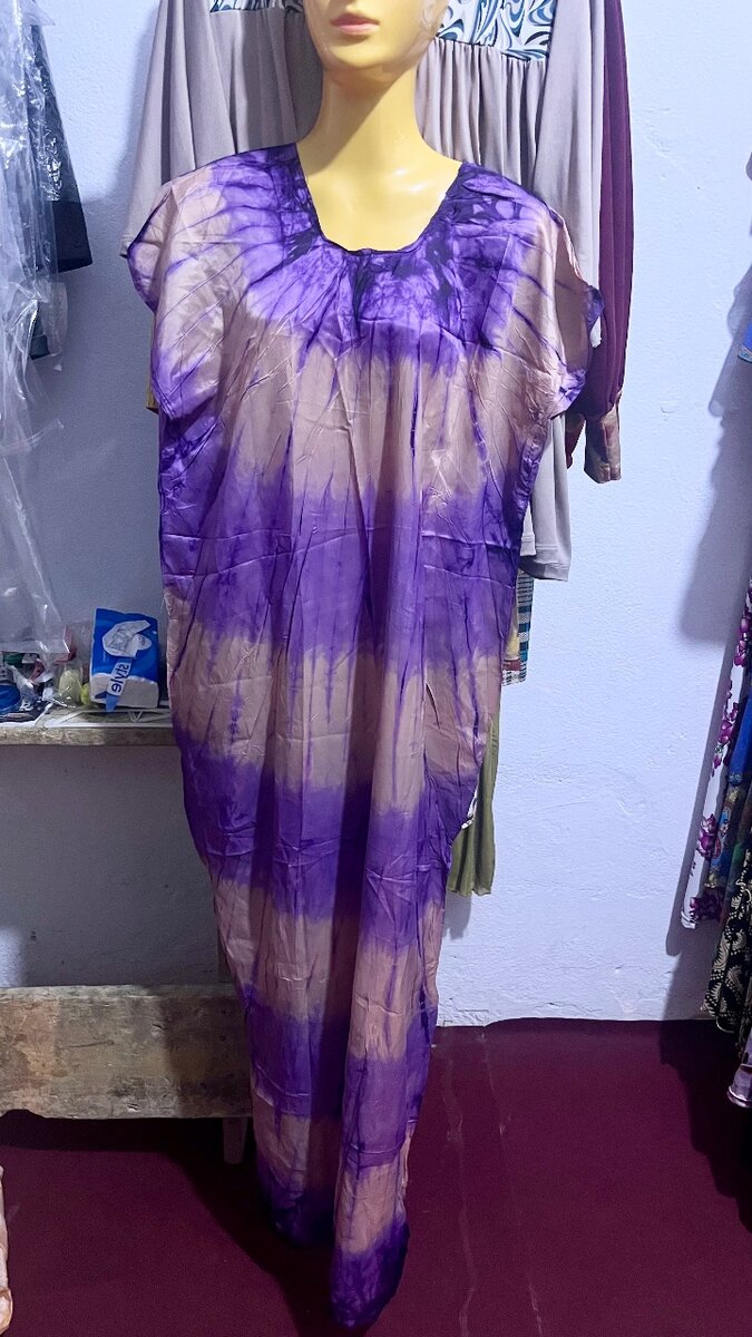 Découvrez notre robe caftan légère et élégante, parfaite pour toutes les occasions estivales. Son design en tie-dye violette ajoute une touche bohème à votre garde-robe. Idéale pour les soirées décontractées ou les journées à la plage, cette robe offre un confort inégalé et un style unique.
