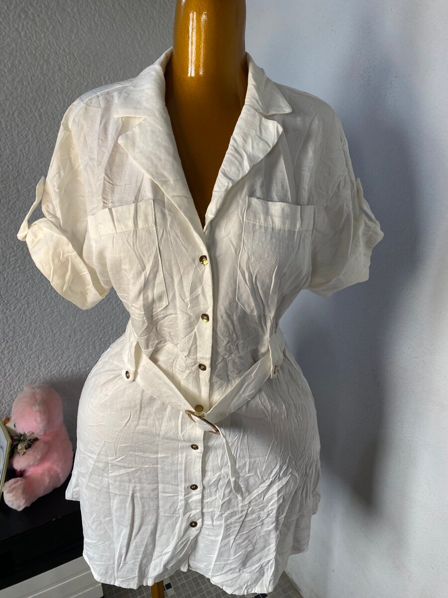 Découvrez cette robe chemise blanche élégante, idéale pour un look chic et décontracté. Fabriquée en tissu léger, elle est parfaite pour les journées ensoleillées. Sa ceinture accentue la silhouette pour un style féminin et raffiné. Portez-la au bureau ou lors d'une sortie décontractée pour un style polyvalent et tendance.