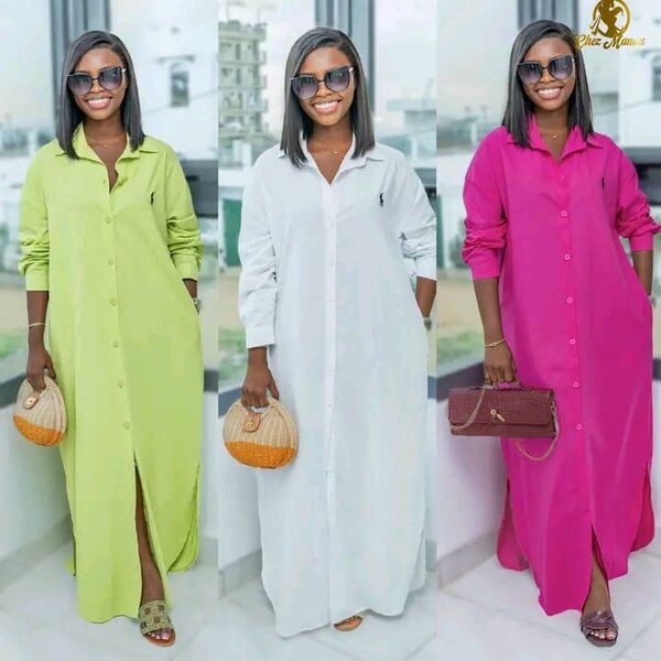 Cette robe chemise blanche offre une silhouette élégante et sophistiquée, parfaite pour des occasions formelles ou décontractées. Fabriquée dans un tissu de haute qualité, elle présente une fente avant flatteuse et des manches longues. Polyvalente et chic, elle s'adapte facilement à différents styles et accessoires. Idéale pour un look raffiné.