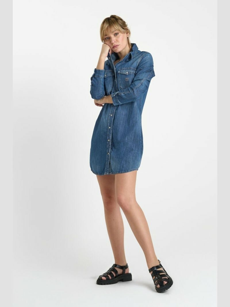 Decouvrir l'élégance décontractée avec cette robe chemise en jean. Parfaite pour un look casual chic, elle offre un confort absolu grâce à sa coupe ample et son tissu doux. Idéale pour toute occasion, du brunch entre amis à une sortie shopping en ville. La robe est dotée de poches pratiques et d'une fermeture boutonnée sur toute la longueur. Sublimez votre garde-robe avec ce choix intemporel
