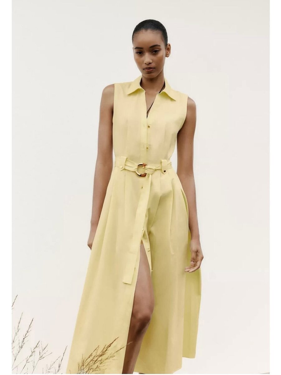 Cette robe chemise sans manches en jaune éclatant est parfaite pour rayonner en été. Avec sa ceinture élégante et sa coupe évasée, elle flatte toutes les silhouettes. Idéale pour une journée décontractée ou une soirée chic, elle apporte confort et style à votre garde-robe. Confectionnée avec des matériaux de qualité, elle est aussi durable que tendance.