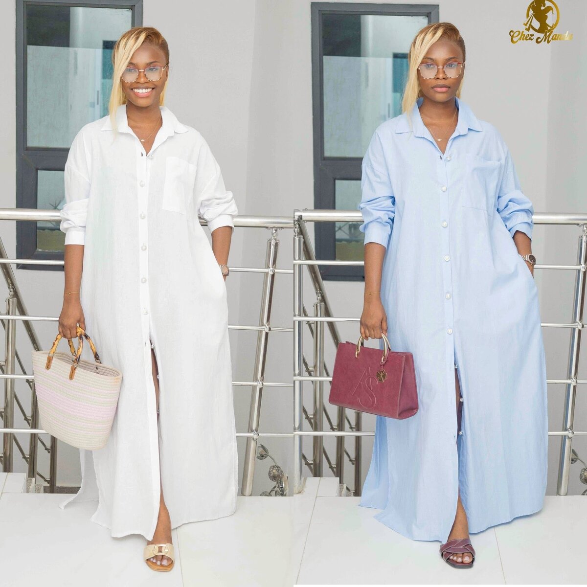 Adoptez un look élégant et confortable avec cette robe chemise longue. Idéale pour diverses occasions, sa coupe ample et son tissu léger assurent une allure décontractée et chic. Parfaite pour le bureau ou les sorties en ville, elle s'accorde facilement avec vos accessoires préférés.