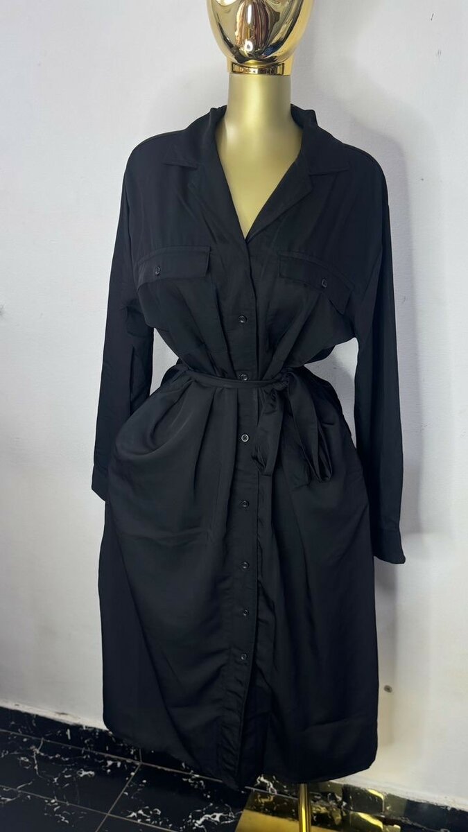 Transformez votre garde-robe avec cette robe chemise noire élégante. Conçue pour le confort et le style, elle est idéale pour les sorties en soirée ou les journées au bureau. Son design ceinturé flatte la silhouette et la matière douce assure un port agréable. Parfaite pour un look chic et sophistiqué.