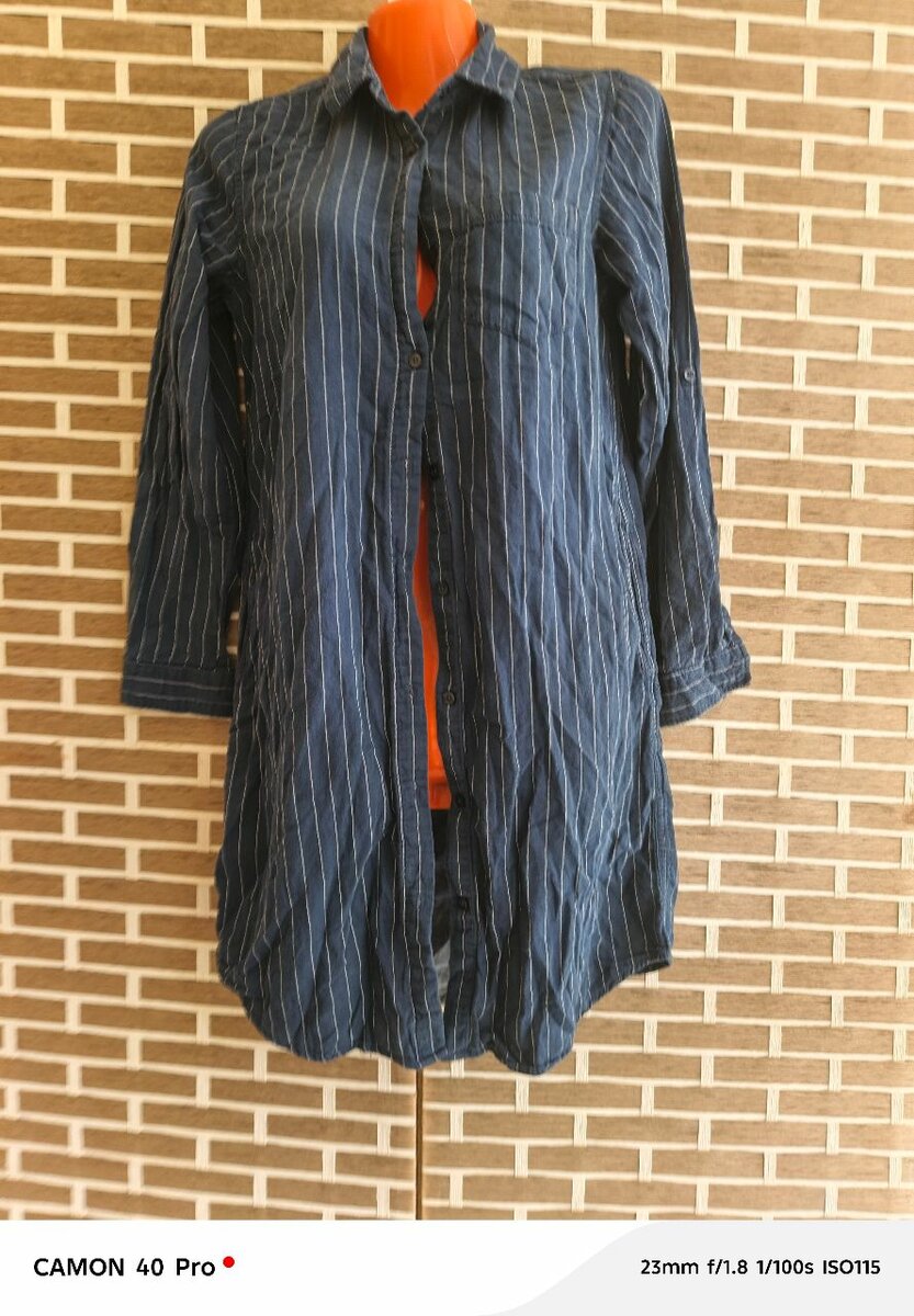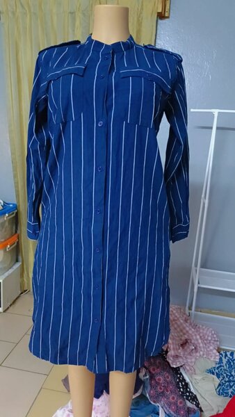 Élégante robe bleue à rayures blanches, parfaite pour un look décontracté ou professionnel. Confection légère, manches longues et col classique, idéale pour toutes saisons. Parfaite pour un style chic et intemporel.