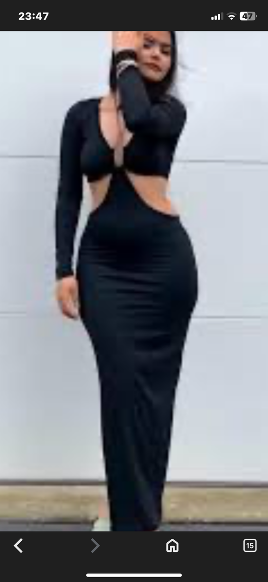 Cette robe noire longue avec découpes audacieuses est parfaite pour une soirée élégante. Confectionnée dans un tissu extensible et confortable, elle met en valeur la silhouette. Idéale pour les occasions spéciales ou les sorties en ville. Un choix incontournable pour celles qui veulent se démarquer.