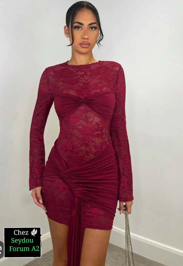 Découvrez cette élégante robe cocktail en dentelle bordeaux, parfaite pour les soirées et événements spéciaux. Elle allie sophistication et confort avec son design raffiné et sa coupe flatteuse. Un choix idéal pour se démarquer avec style.
