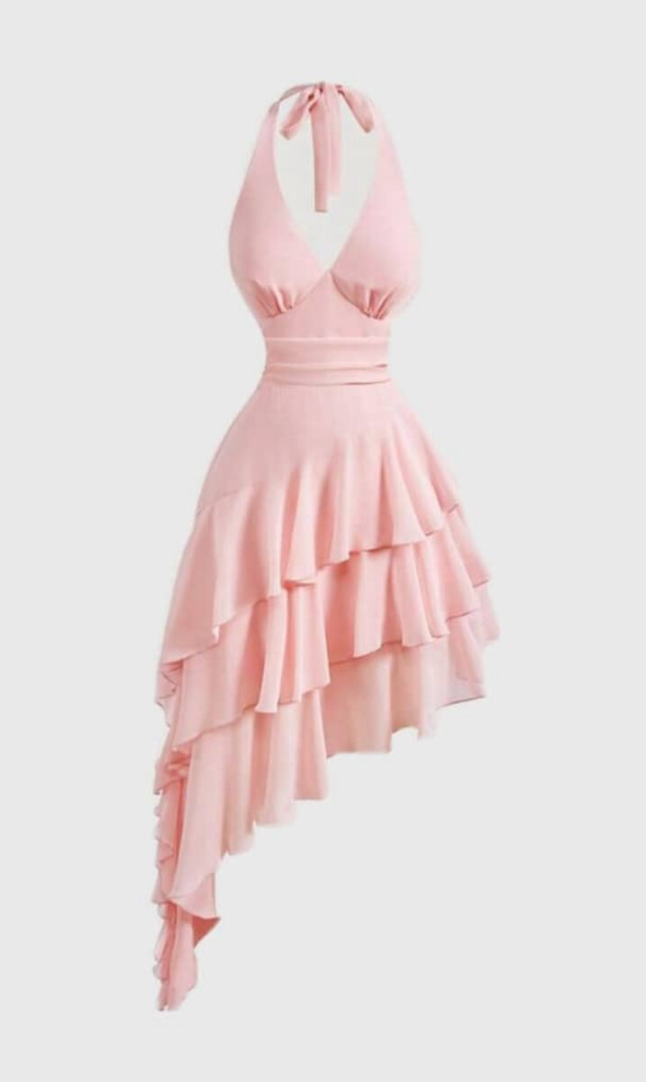 Cette robe de cocktail est un choix parfait pour vos événements spéciaux. Sa coupe flatteuse avec un décolleté à encolure et des volants ajoute une touche de glamour. Disponible en rouge bourgogne et rose, idéale pour des soirées inoubliables.