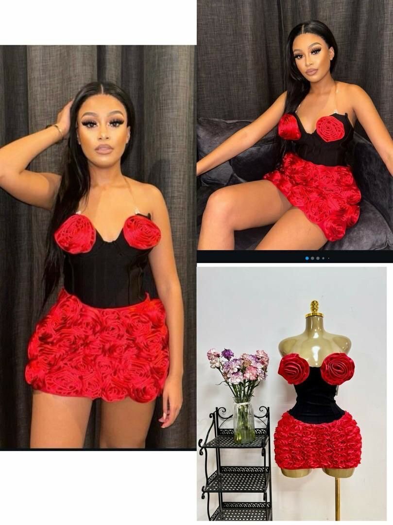 Élégante et audacieuse, cette robe cocktail avec des décorations florales en rouge et noir est parfaite pour vous démarquer lors de soirées ou événements spéciaux. Fabriquée en tissu léger et confortable, elle assure un style chic tout en restant à l'aise. Idéale pour une soirée glamour ou une fête élégante. Soyez le centre d'attention avec cette pièce unique qui célèbre la féminité et le style audacieux.
