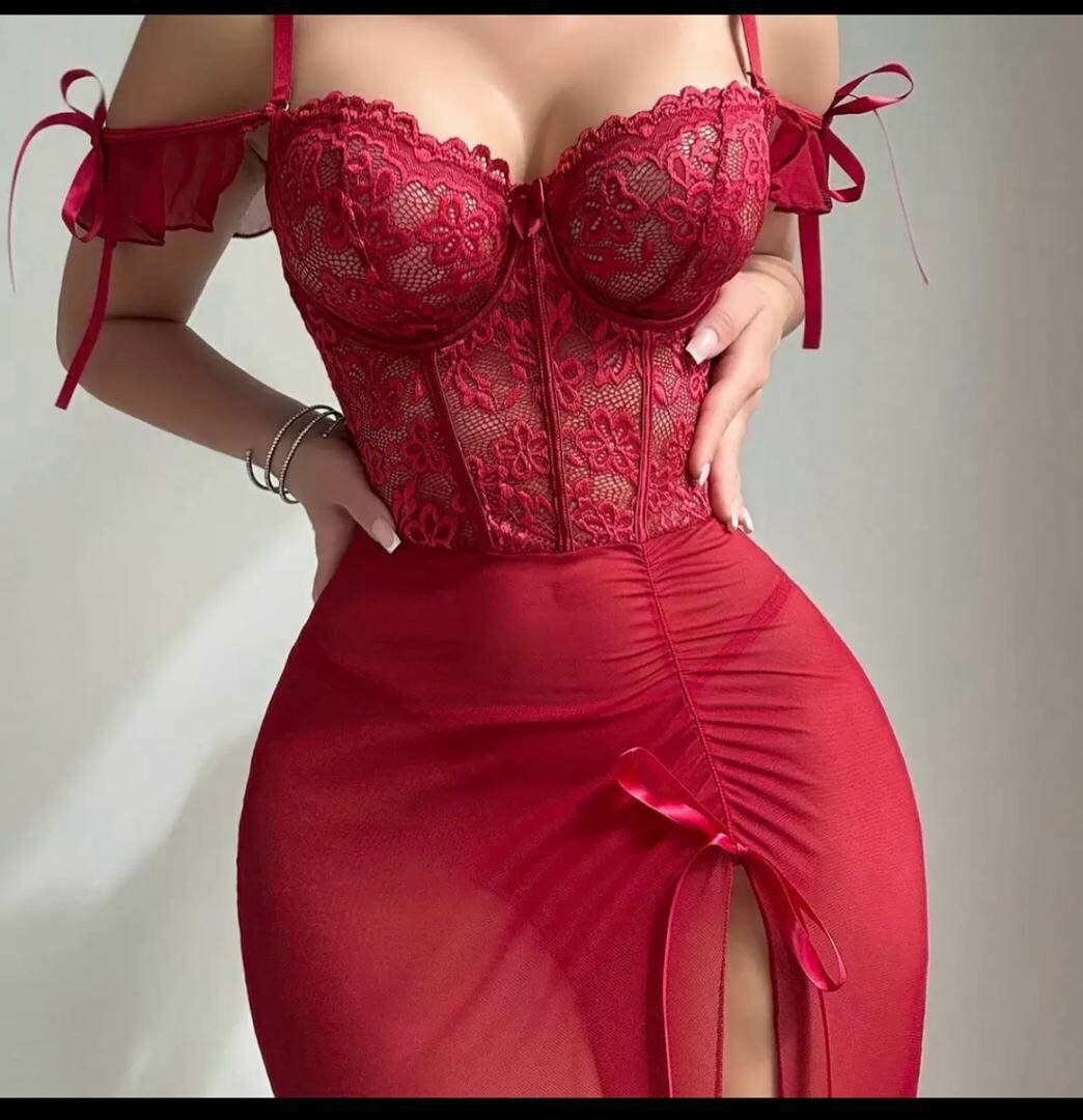 Plongez dans le glamour avec cette robe corset en dentelle rouge, conçue pour sublimer votre silhouette. Parfaite pour les soirées élégantes, elle offre un ajustement confortable et flatteur. La broderie délicate et les détails en ruban ajoutent une touche féminine irrésistible. Idéale pour vous faire remarquer lors de vos événements spéciaux.