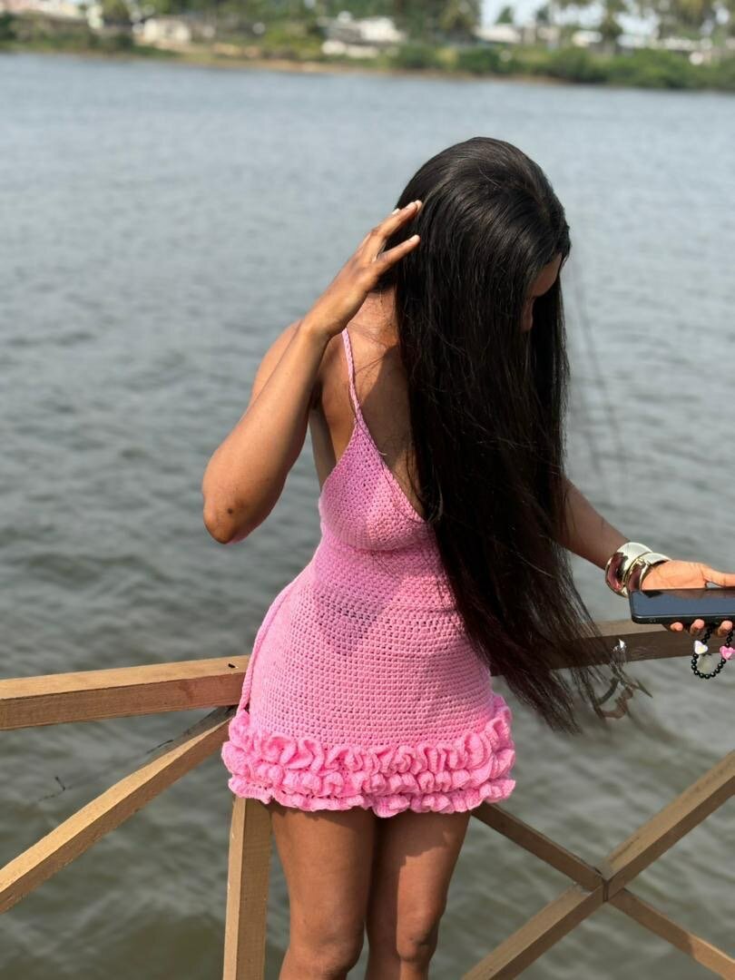 Robe courte avec froufrou confectionné en laine