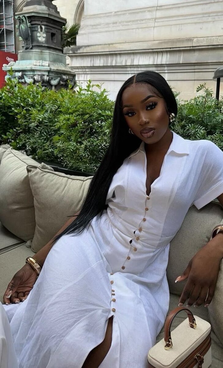 Découvrez cette robe d'été blanche, idéale pour des journées chaudes ou des sorties élégantes. Sa coupe ajustée et ses boutons ajoutent une touche de sophistication. Parfaite pour un look à la fois décontracté et chic.