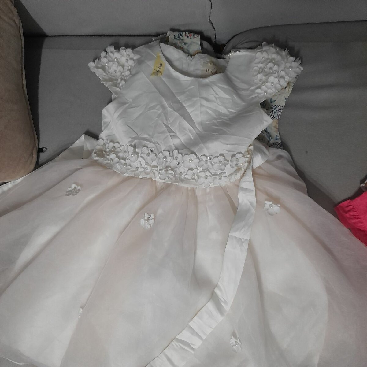Élégante robe de cérémonie pour fille, parfaite pour mariages ou baptêmes. Design raffiné avec détails floraux en dentelle, apporte une touche de sophistication. Confortable à porter, elle fera rayonner votre enfant lors d'occasions spéciales.