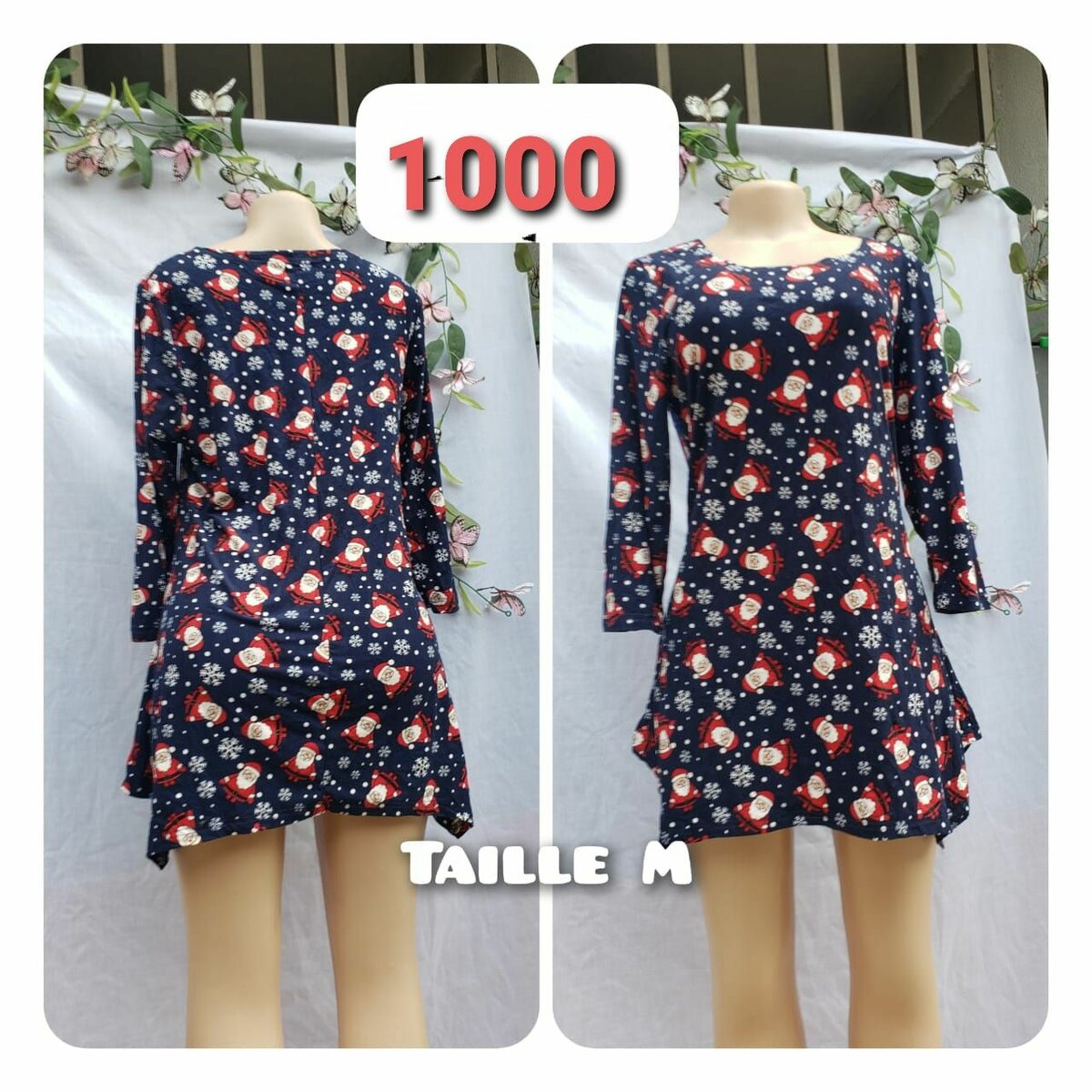 Cette robe festive en taille M est parfaite pour la saison des fêtes. Confortable et élégante, elle arbore un motif de Noël amusant et coloré qui apporte une touche joyeuse à votre garde-robe. Idéale pour les vacances ou les événements décontractés durant l'hiver.