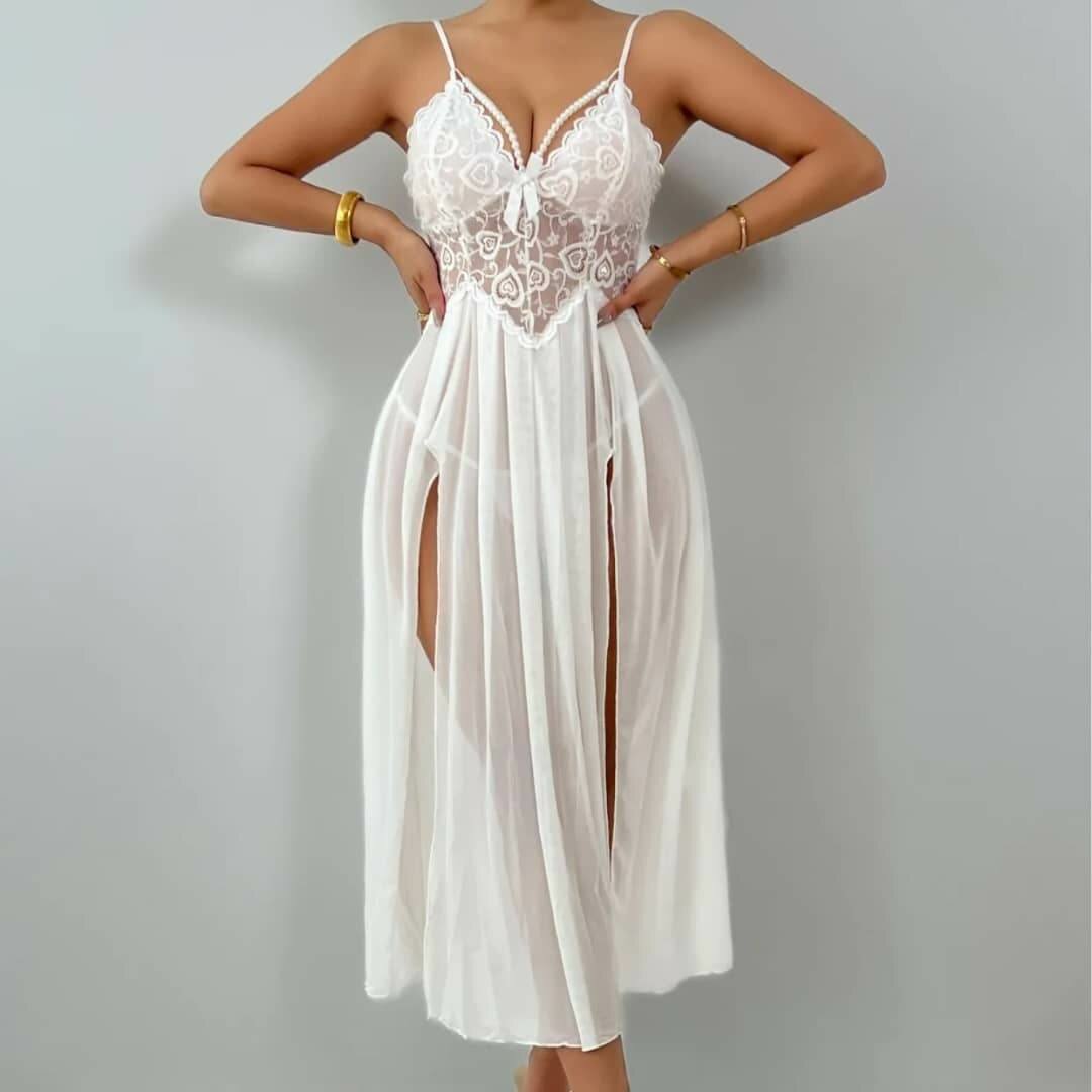 Découvrez cette élégante robe de nuit en dentelle blanche
