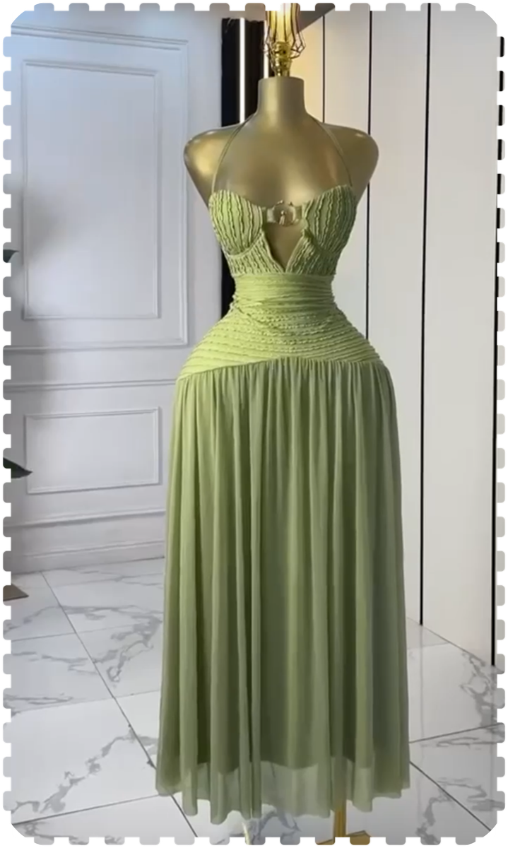 Découvrez cette ravissante robe de soirée longue, parfait choix pour une élégance raffinée. Fabriquée dans un tissu émeraude luxueux, elle met en valeur votre silhouette avec un design plis et un décolleté séduisant. Idéale pour mariages, galas et événements spéciaux, elle assure une allure inoubliable.