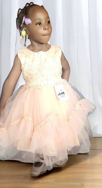 Élégante robe de soirée dorée pour enfant, idéale pour les occasions spéciales. Conçue avec des détails en dentelle et des perles, elle offre une allure royale. Le tissu en tulle assure un confort optimal, parfait pour une célébration ou un mariage.