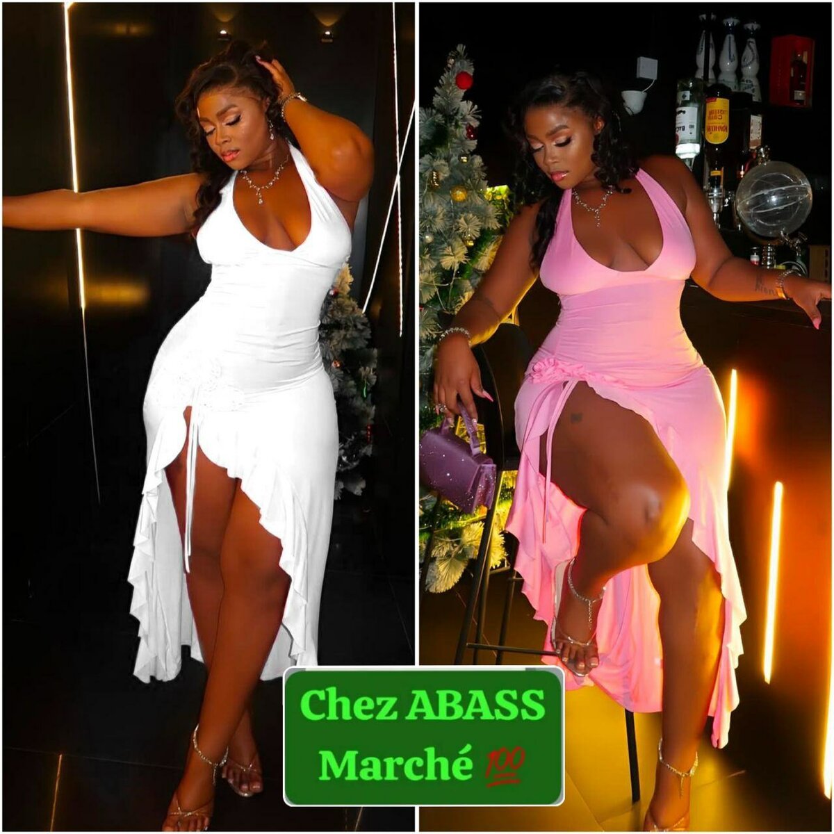 Éblouissante robe de soirée fendue, idéale pour les occasions spéciales. Disponible en blanc et rose, cette robe souligne magnifiquement la silhouette grâce à sa coupe ajustée et son tissu fluide. Parfaite pour briller lors de vos soirées.