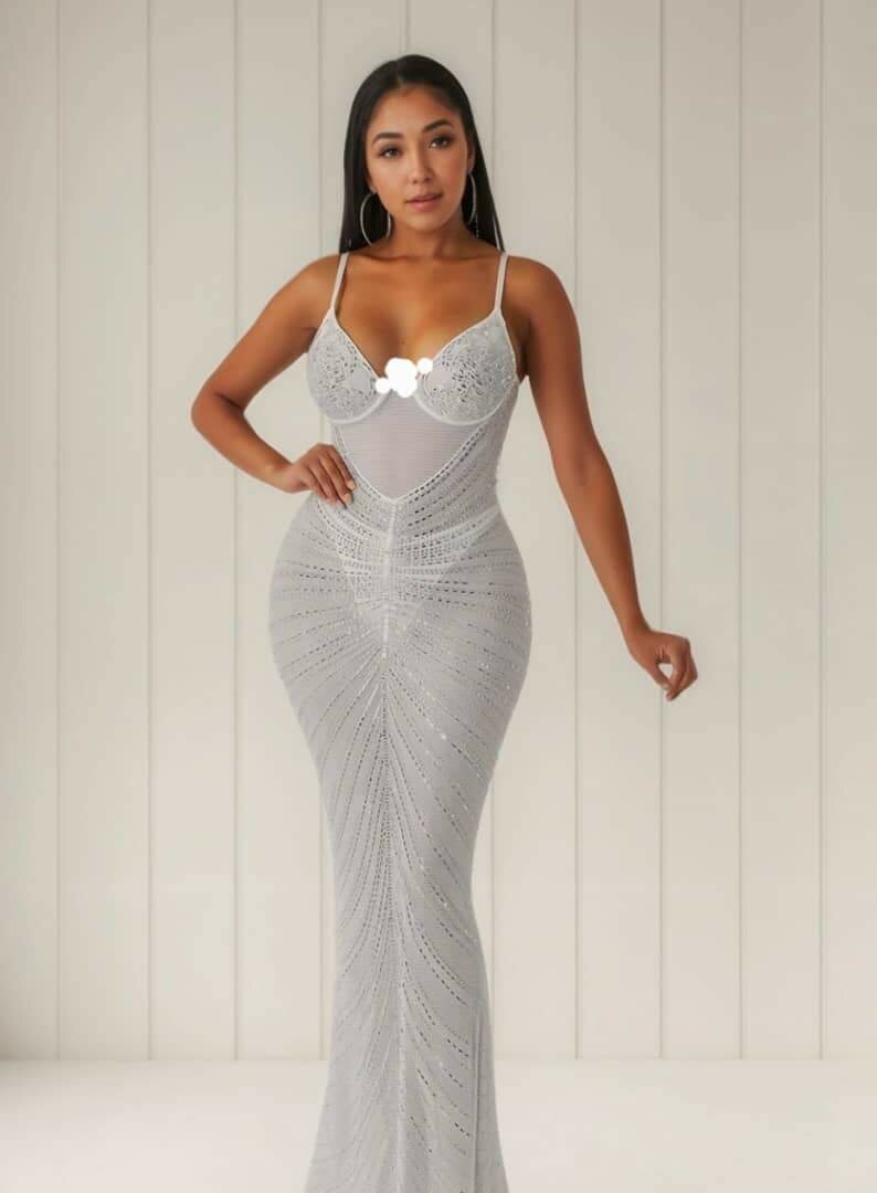 Cette robe de soirée élégante et étincelante est idéale pour les occasions spéciales. Conçue avec des détails scintillants, elle met en valeur votre silhouette. Parfaite pour un mariage ou une soirée formelle, cette robe vous fera briller.