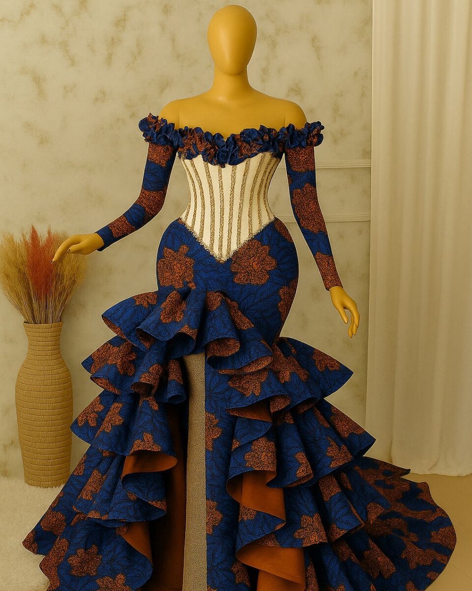 Éblouissez lors de votre prochaine soirée avec cette robe de soirée chic. Conçue en tissu floral bleu et marron, elle présente des volants luxueux et une coupe flatteuse, idéale pour des événements élégants. Soyez le centre de toutes les attentions!