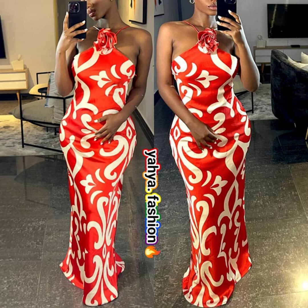 Robe de soirée rouge avec motif floral et design ajusté, parfaite pour des événements spéciaux. Tissu de haute qualité assurant un confort maximal.