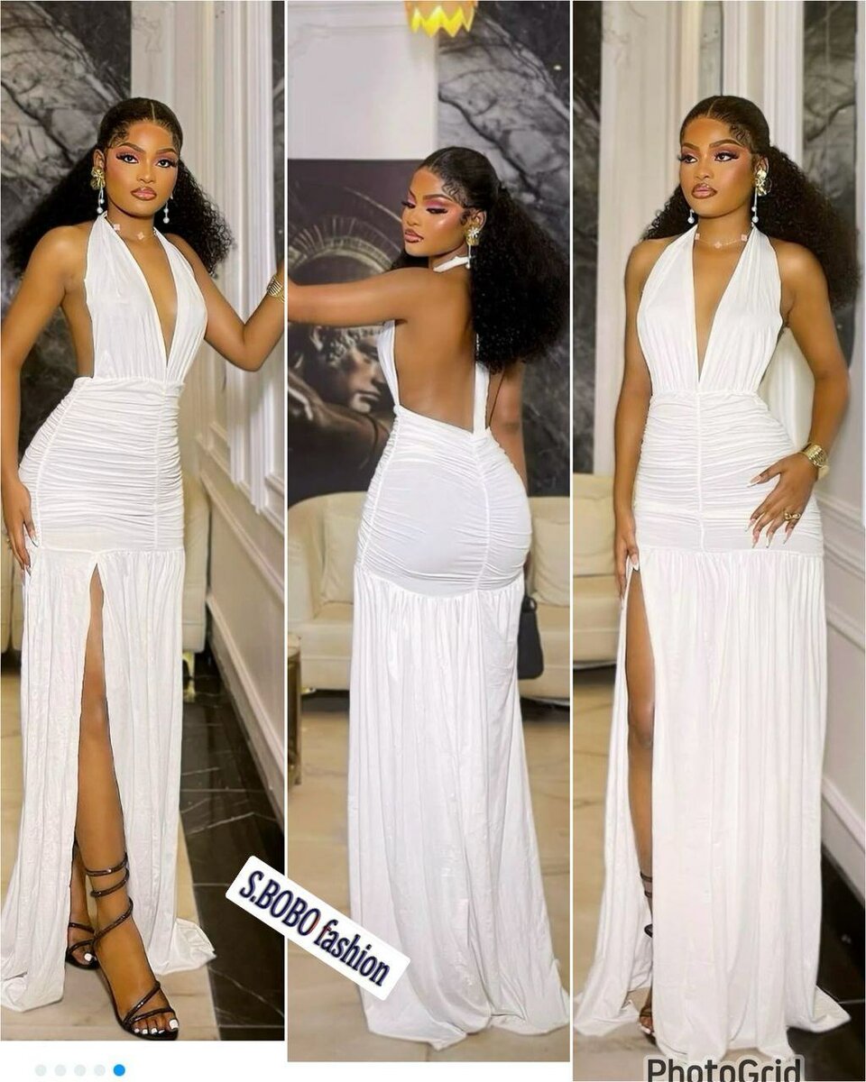 Robe de soirée en fente dos ouvert attache au coup