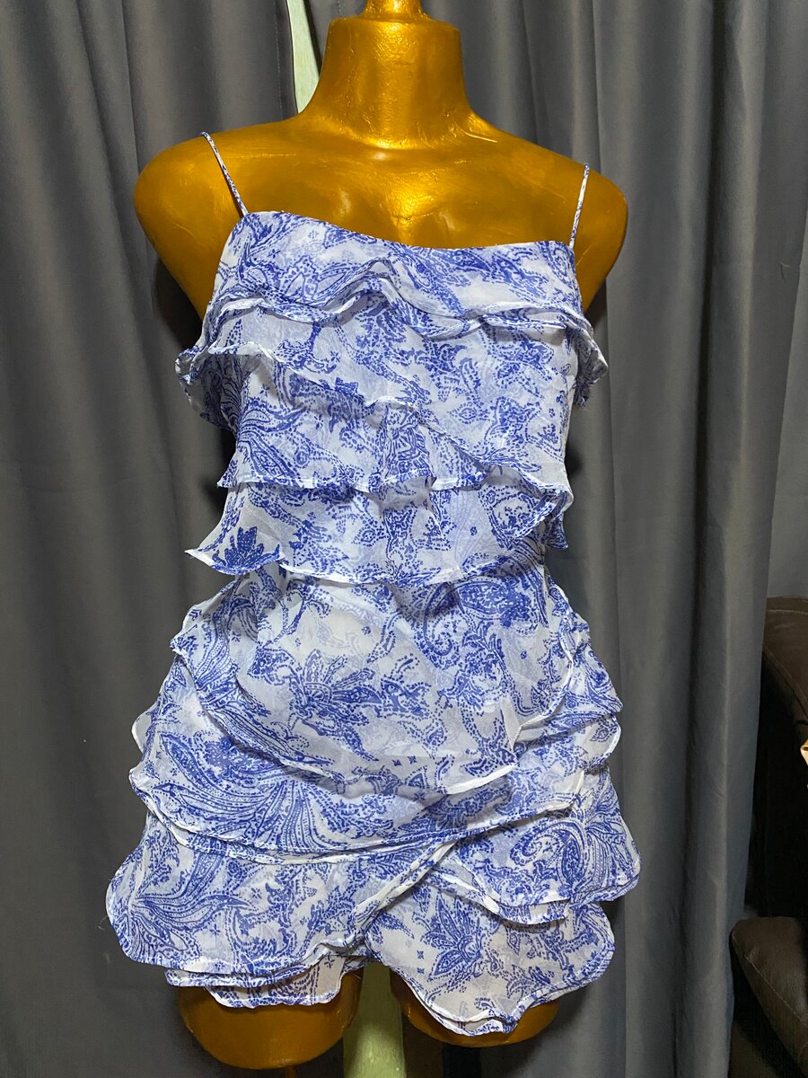 Découvrez la robe d'été parfaite pour vos journées ensoleillées. Avec ses magnifiques volants et son imprimé bleu élégant, cette robe apporte à la fois élégance et fraîcheur à votre garde-robe. Idéale pour une sortie en ville ou un événement décontracté. Fabriquée avec des matériaux confortables pour un port agréable. Disponible en plusieurs tailles.
