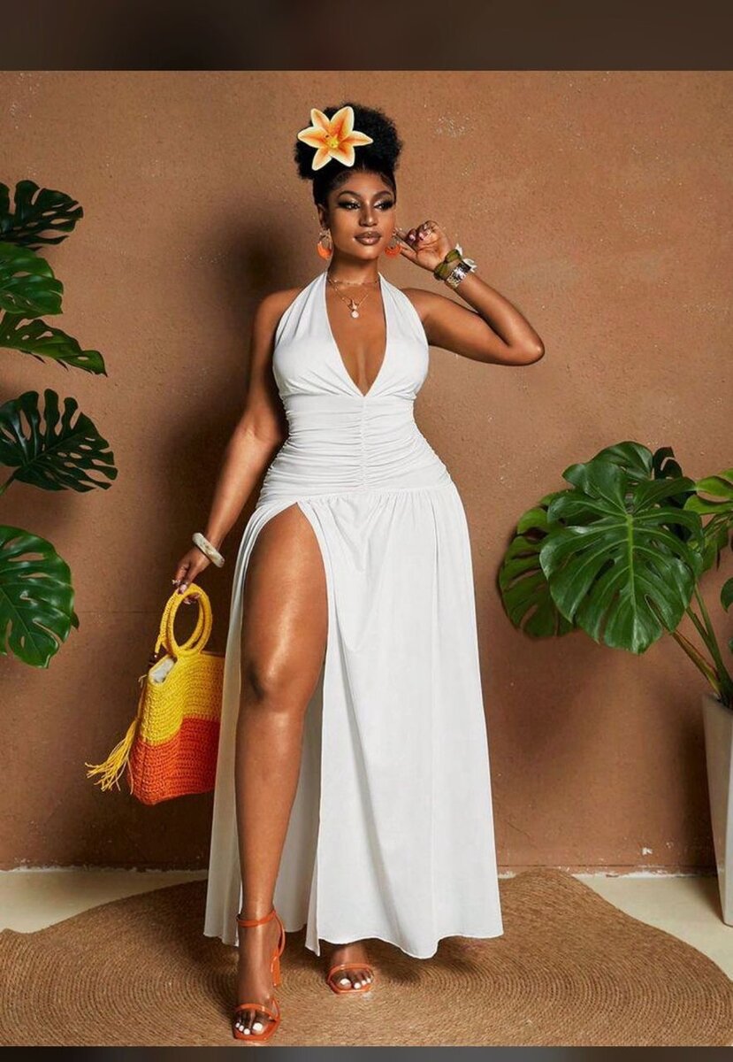 Sublimez votre allure avec cette robe d'été élégante. Conception sans manches, fente flatteuse et tissu léger pour un confort optimal. Idéale pour des sorties estivales, mariages en plein air et soirées vacances. Faites sensation avec style et élégance!