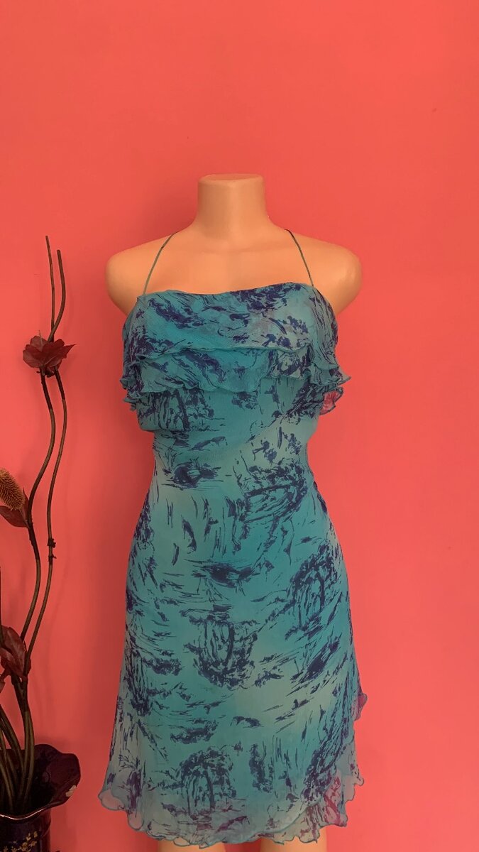 Découvrez cette élégante robe d'été bleue à bretelles. Parfaite pour les journées ensoleillées, elle offre un style léger et fluide avec son design imprimé. Idéale pour une sortie décontractée ou une occasion spéciale.