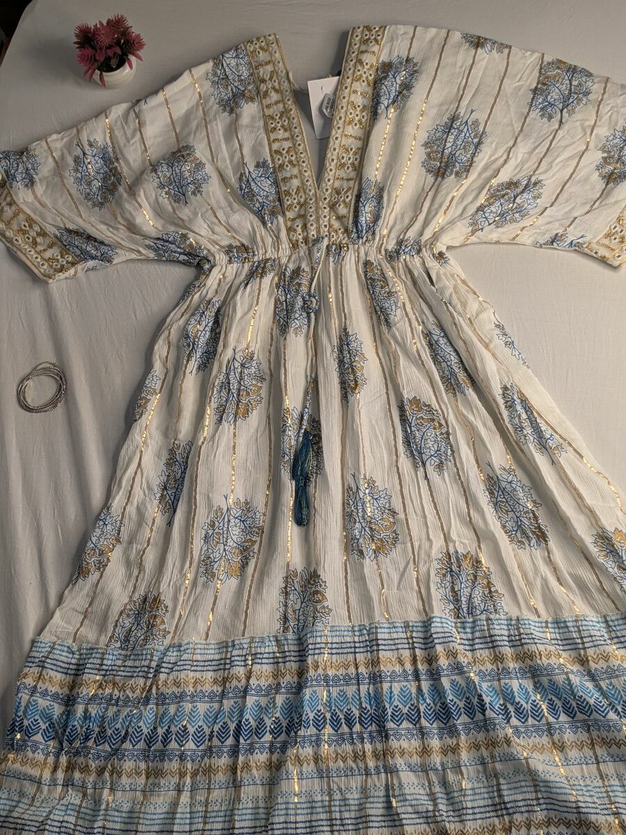 Boubou 100%coton blanc et bleu disponible a 10000fr