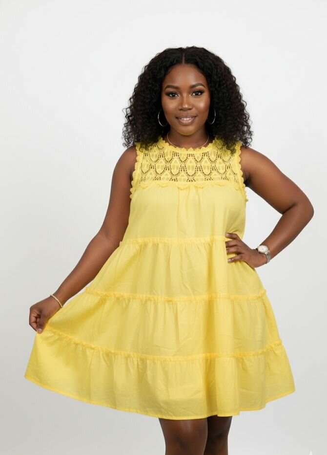 Éclairez votre garde-robe avec cette robe d'été jaune lumineuse. Conçue pour offrir confort et élégance, elle est idéale pour les journées ensoleillées. Son design léger et sans manches convient parfaitement aux sorties estivales ou aux moments décontractés entre amis. Une pièce essentielle pour toute femme appréciant le style et la simplicité.