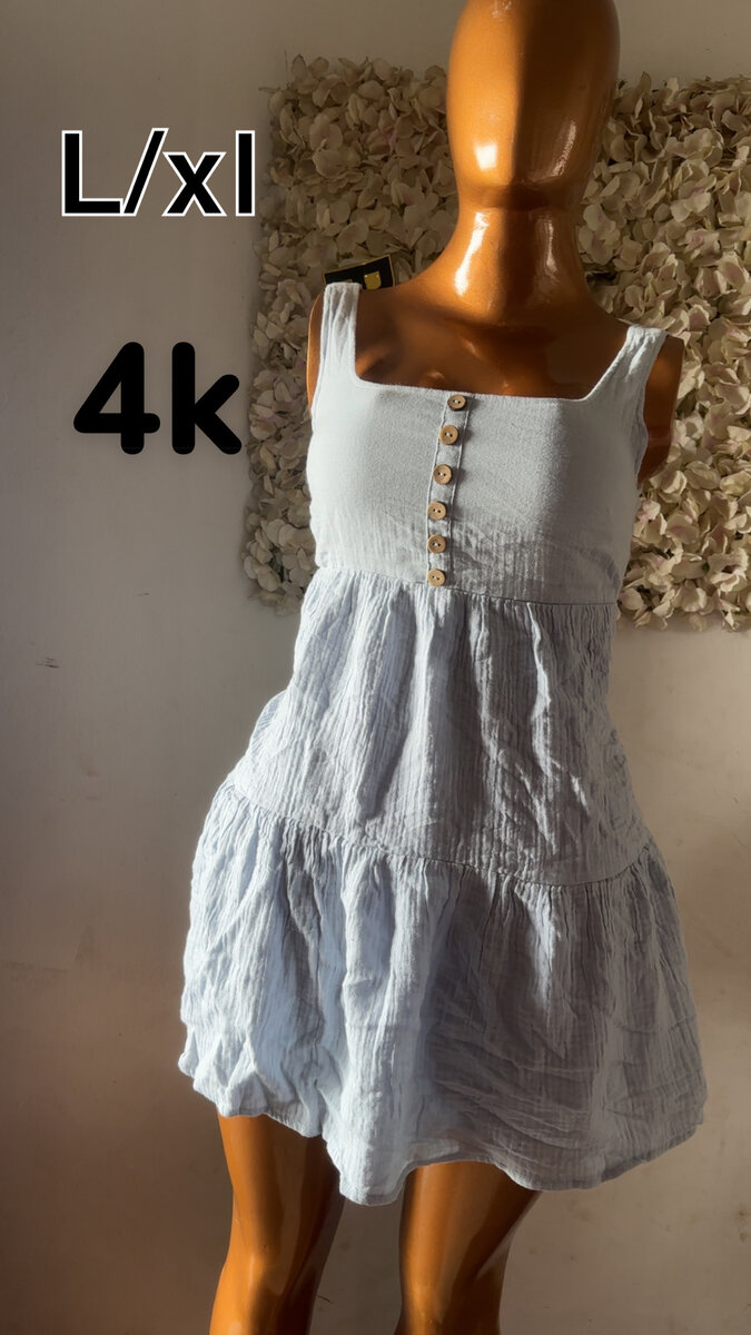 Cette robe d'été légère est idéale pour les journées ensoleillées. Fabriquée avec un tissu doux et respirant, elle assure confort et élégance. Parfaite pour une sortie décontractée ou une journée à la plage, elle se distingue par ses boutons décoratifs et son style évasé. Disponible en taille L/XL, elle s'adapte à toutes les morphologies.