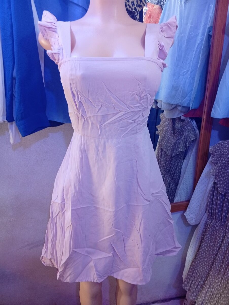 Élégante robe d'été rose avec nœud au dos et bretelles à volants. Parfaite pour les occasions décontractées ou les sorties estivales. Tissu léger assurant confort et style tout au long de la journée.