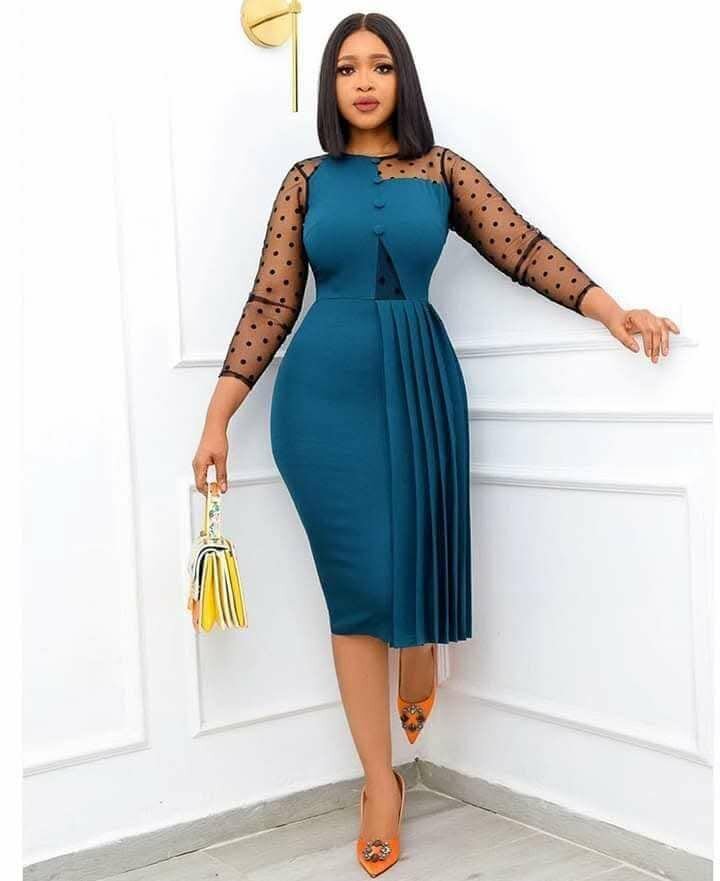 Cette robe élégante allie sophistication et modernité avec ses manches en tulle à pois et sa jupe plissée flatteuse. Idéale pour les occasions spéciales ou professionnelles, elle est un choix incontournable pour toute garde-robe.
