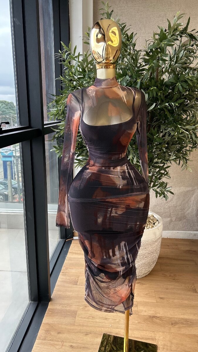 Élégante robe moulante avec des manches longues et un design artistique. Fabriquée avec un tissu de haute qualité, elle est parfaite pour des soirées ou des occasions spéciales. Son style modern met en valeur votre silhouette et assure un look sophistiqué. Idéale pour les femmes cherchant à se démarquer.