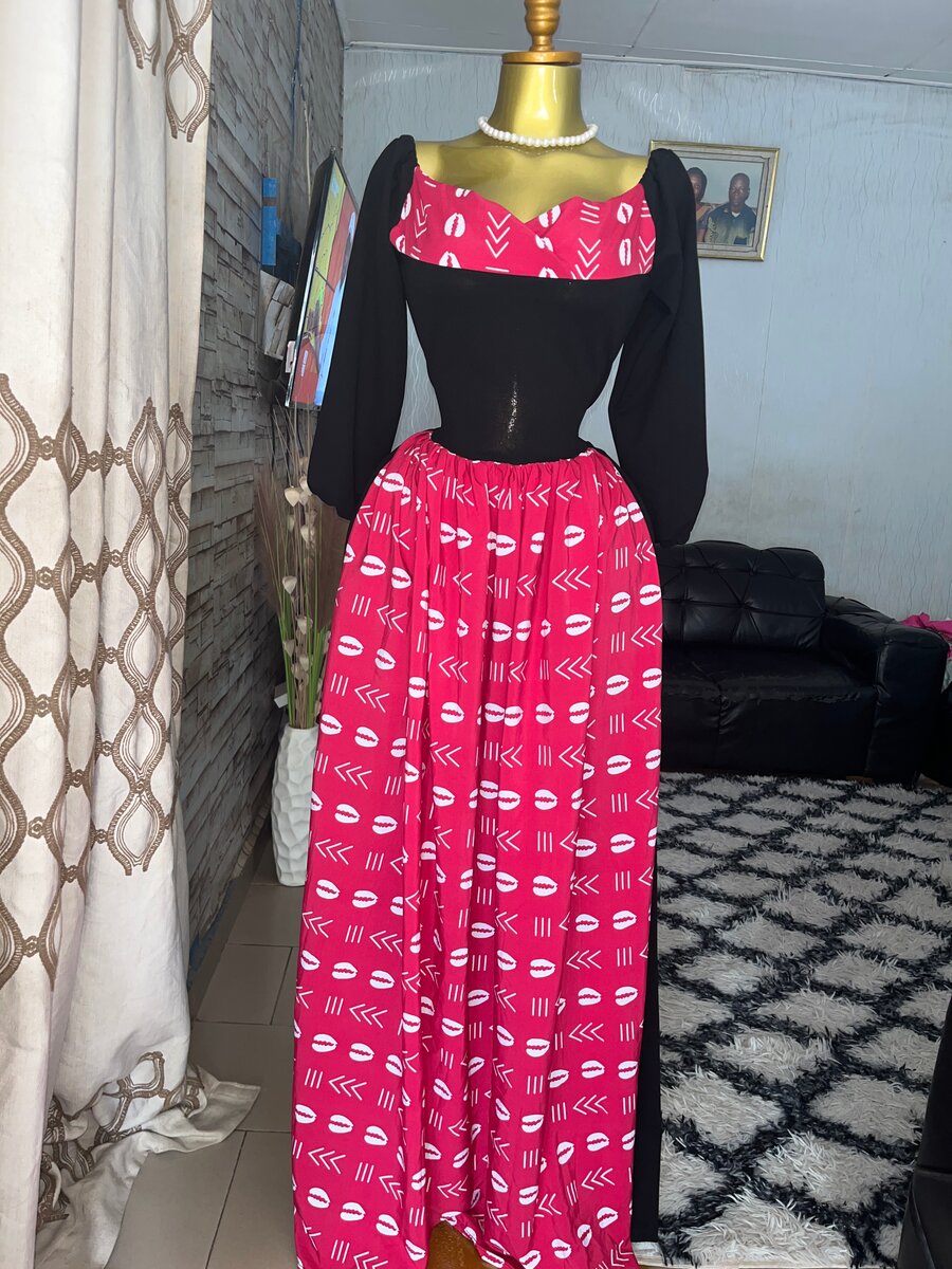 Découvrez une robe unique aux motifs africains, parfaite pour les occasions spéciales. Conçue avec des manches longues et une jupe évasée, elle allie confort et style. Disponible en plusieurs couleurs vibrantes, c'est le choix idéal pour sublimer votre garde-robe. Portez-la avec des accessoires sobres pour un look chic et raffiné. Idéale pour les soirées, mariages ou événements culturels.