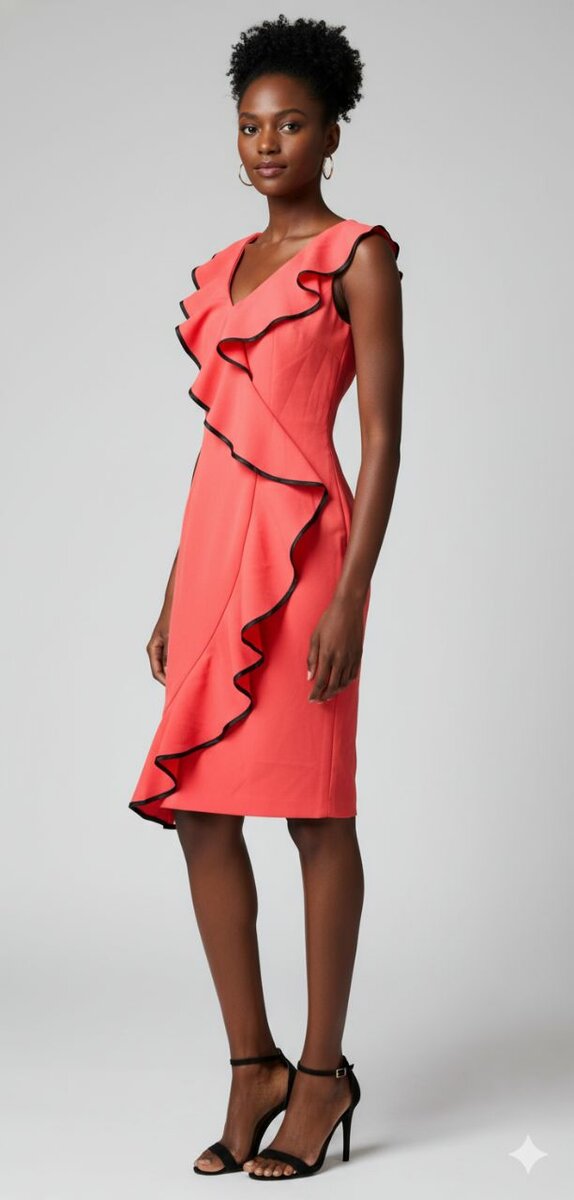 Cette magnifique robe corail à volants et avec une belle dentelle noire dans le dos est parfaite pour vos soirées ou événements spéciaux. Son design chic et féminin met en valeur votre silhouette tout en vous offrant un confort inégalé. Fabriquée avec des matériaux de haute qualité, elle est idéale pour affirmer votre style avec élégance. Associez-la avec des accessoires simples pour un look parfait pour une cérémonie ou à un mariage.