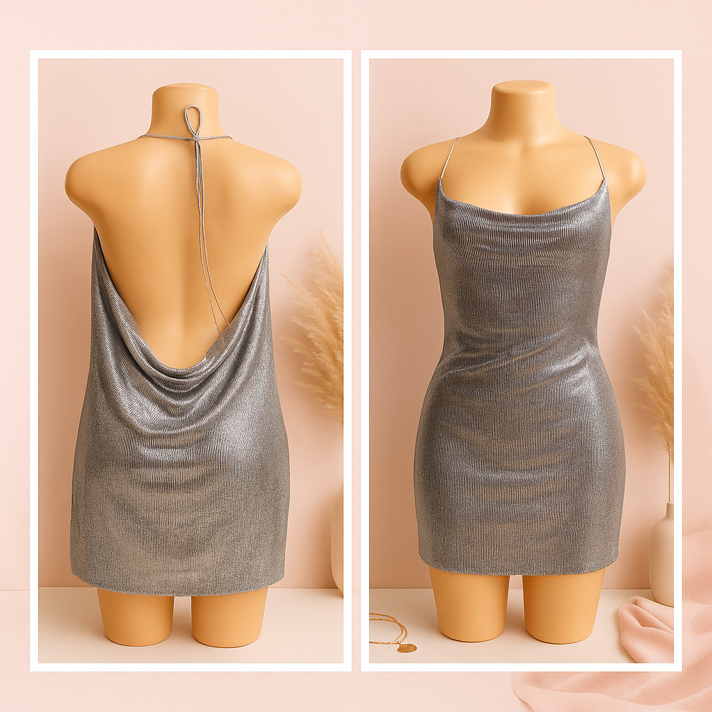 Découvrez notre robe élégante argentée, parfaite pour briller en soirée. Son design chic et moderne offre une coupe flatteuse qui met en valeur votre silhouette. Parfaite pour les occasions spéciales, elle attire tous les regards avec son éclat subtil et son style unique. Idéale pour celles qui veulent se démarquer avec élégance.