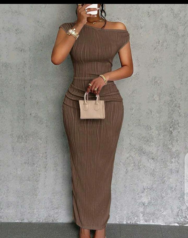 Découvrez notre robe élégante à épaules dénudées, parfaite pour vos soirées spéciales. Son design asymétrique et sa coupe ajustée subliment la silhouette. Idéale pour un look chic et sophistiqué.