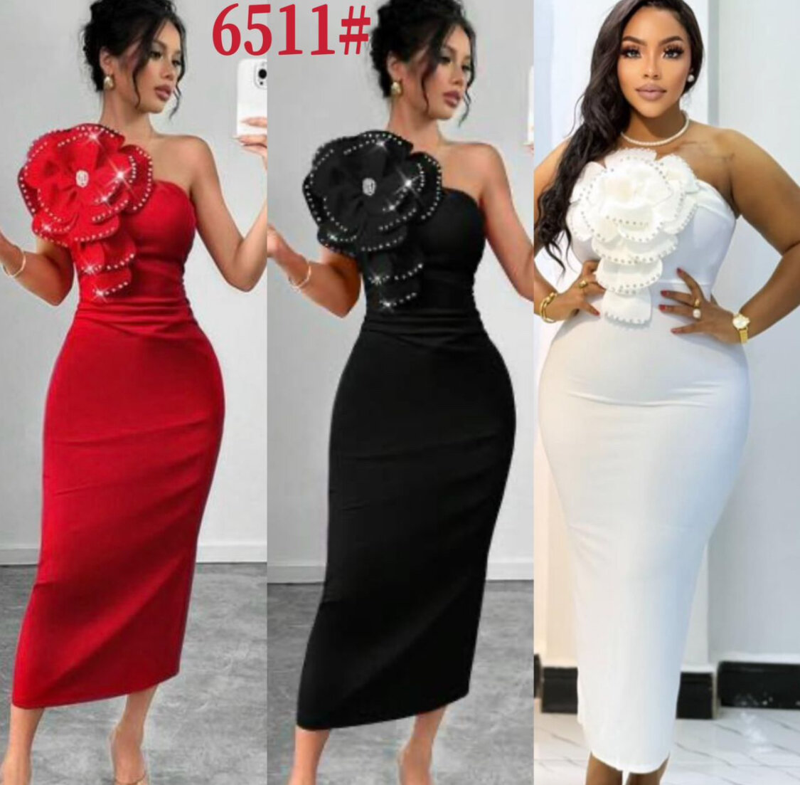 Découvrez cette robe élégante ornée d'une grande fleur, parfaite pour les soirées spéciales. Disponible en rouge, noir et blanc, elle mettra en valeur votre silhouette. Idéale pour un look sophistiqué et unique. Achetez maintenant et brillez lors de vos événements!