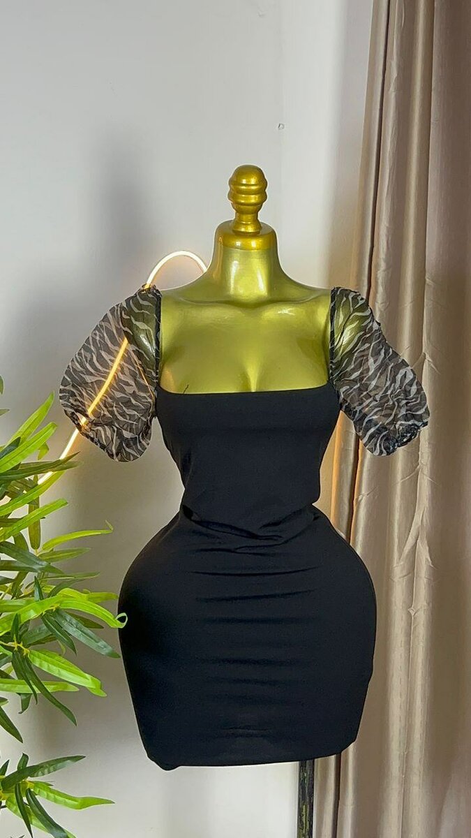 Découvrez cette robe noire élégante avec des manches bouffantes transparentes, parfaite pour vos soirées et événements spéciaux. Conçue pour sublimer votre silhouette, elle vous assure une allure chic et féminine. Un choix idéal pour celles qui aiment allier style et confort.