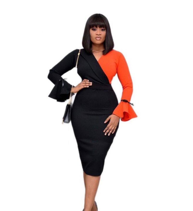 Découvrez cette robe chic bicolore, parfaite pour toute occasion sophistiquée. Son design unique et ses manches évasées ajoutent une touche de glamour. Idéale pour les soirées ou les événements professionnels.