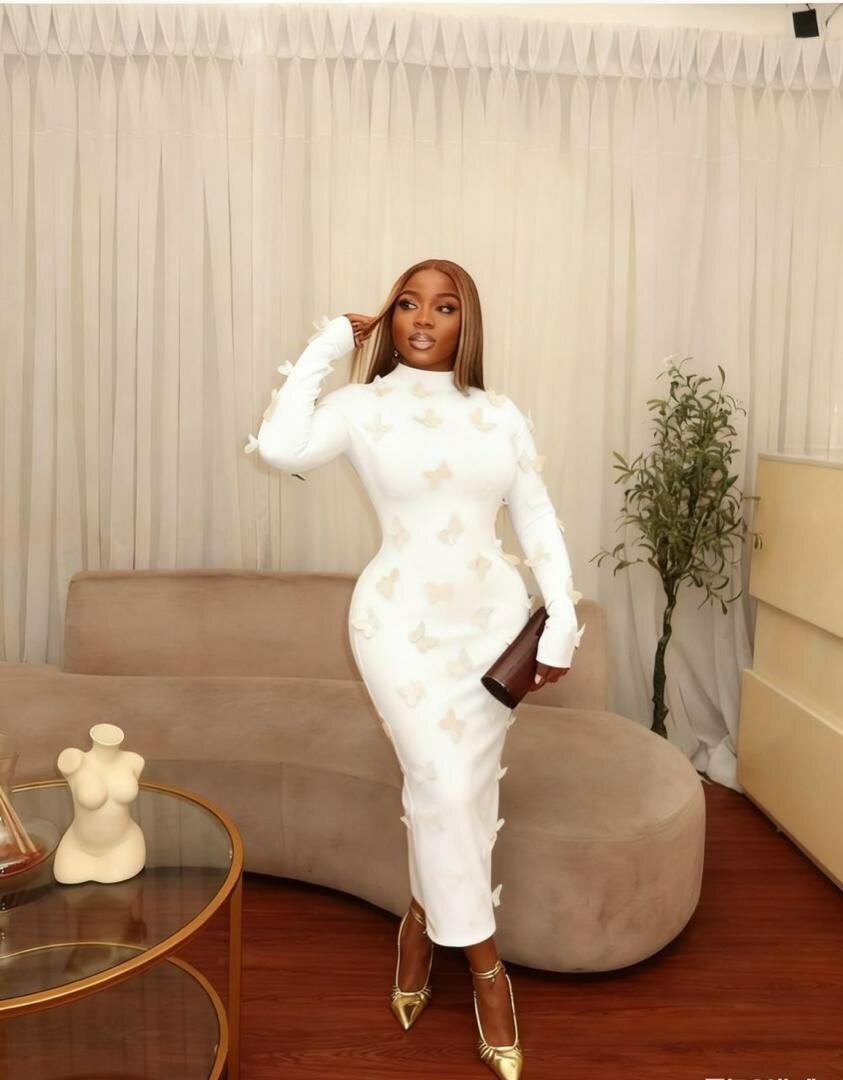 Sublimez votre garde-robe avec cette élégante robe blanche ornée de papillons. Parfaite pour les occasions spéciales, sa coupe ajustée souligne la silhouette avec grâce. Fabriquée avec des matériaux de qualité, elle offre un confort optimal tout en étant chic. Idéale pour cocktail, soirée ou événement formel. Exprimez votre style avec élégance et raffinement.