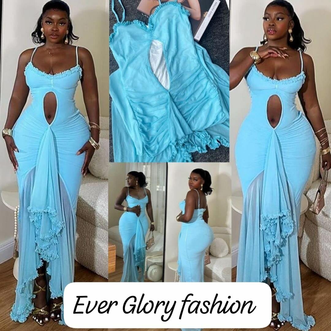 Optez pour un style sensationnel avec cette robe bleue à découpe sexy. Elle présente des bretelles fines et un design audacieux qui met en valeur votre silhouette. Parfaite pour les soirées ou occasions spéciales, ajoutez une touche glamour à votre garde-robe.