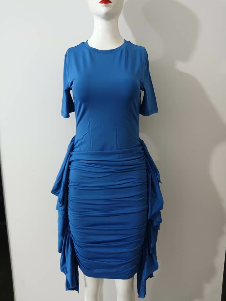 Découvrez cette robe bleue élégante avec des détails froncés qui soulignent la silhouette. Idéale pour les soirées ou événements spéciaux, elle offre confort et style. Conçue pour s'adapter parfaitement aux courbes, cette robe est un choix parfait pour celles qui veulent se démarquer avec élégance.