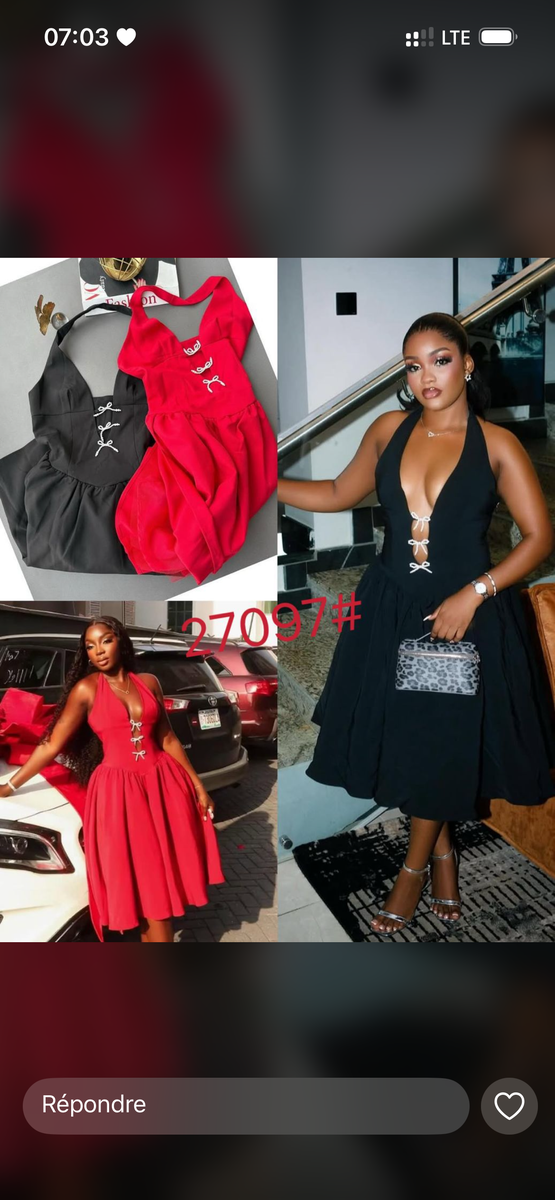 Découvrez cette robe chic et séduisante, idéale pour un événement spécial ou une soirée. Disponible en rouge et noir, elle offre une coupe flatteuse avec un décolleté audacieux, mettant en valeur votre silhouette. Fabriquée avec des matériaux de haute qualité pour un confort optimal. Parfaite pour les occasions où vous voulez impressionner et vous démarquer.