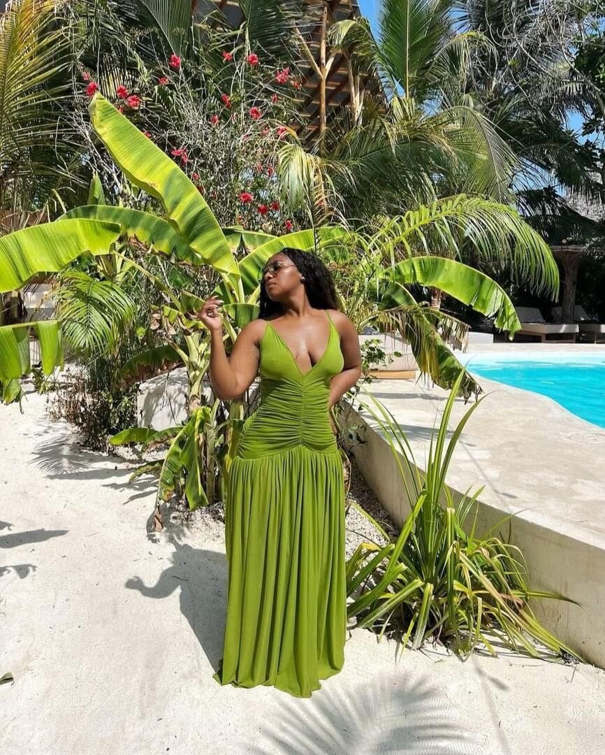 Robe longue et chic, parfaite pour les occasions spéciales. Son design dos nu et sa coupe fluide mettent en valeur chaque silhouette. Idéale pour soirées ou événements formels.