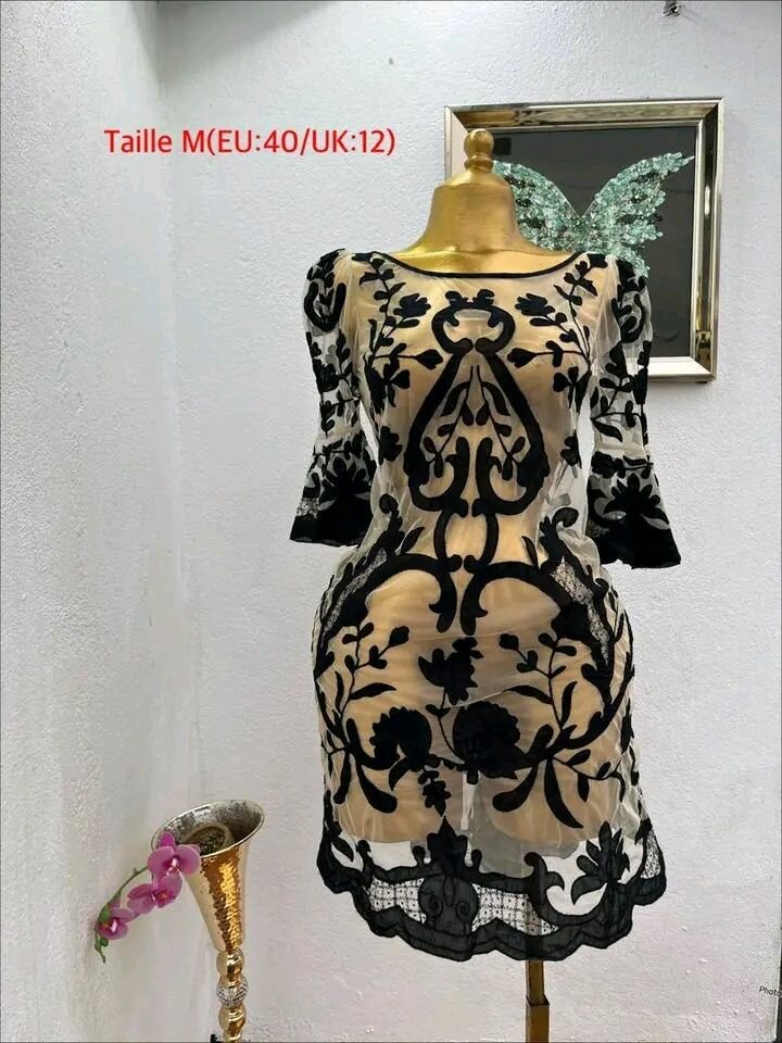 Découvrez cette élégante robe en dentelle, parfaite pour toutes les occasions spéciales. Disponible en taille M (EU: 40/UK: 12), elle se distingue par ses motifs sophistiqués et sa coupe flatteuse qui mettent en valeur votre silhouette. Que ce soit pour un cocktail élégant ou un dîner romantique, cette robe sera votre alliée mode incontournable. Faites sensation à chaque instant!